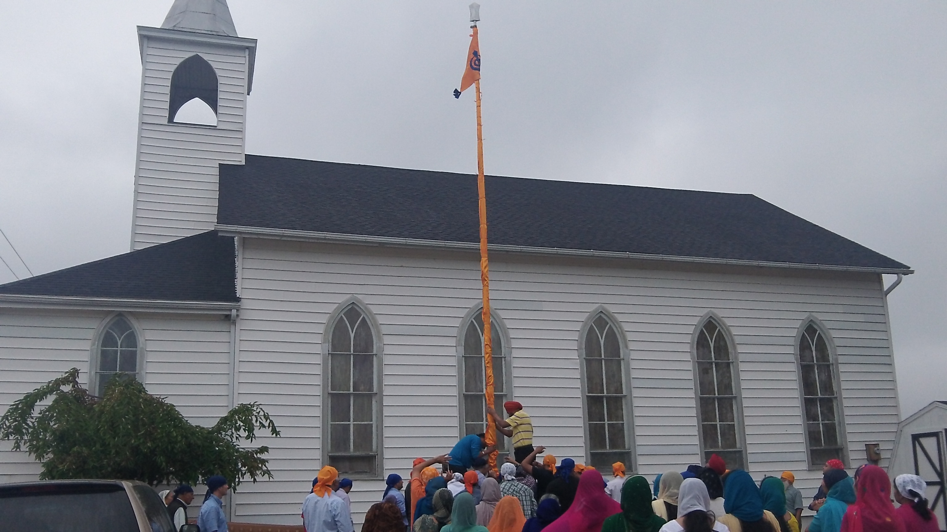 On Sunday, Sikhs in Indiana raised the Nishan Sahib at the Sikh Gurdwara of Fort Wayne, in Roanoke, Indiana. (Source: Lori Way)